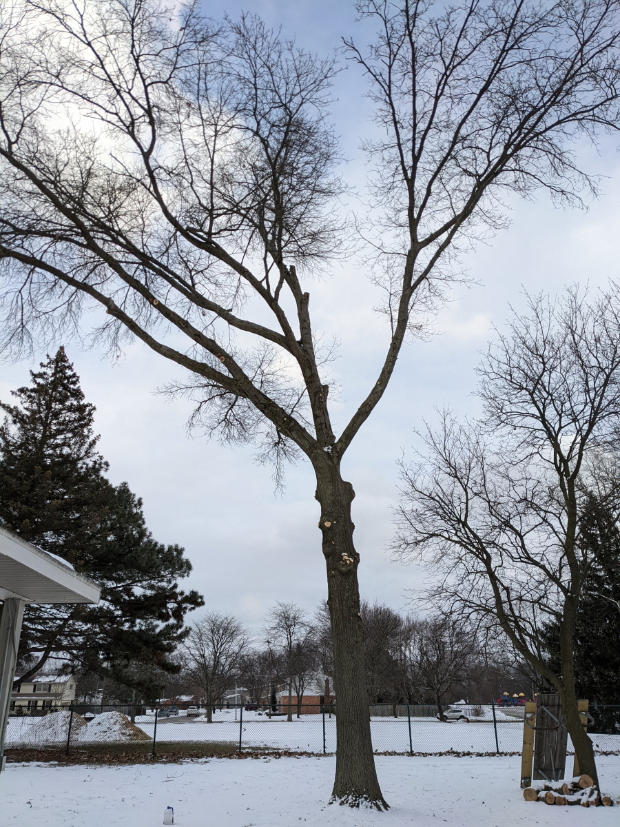 • The (literally) half-dead cottonwood tree on the northern fence line was removed down to the fence line. As it has grown into the fence, the next steps are being evaluated.