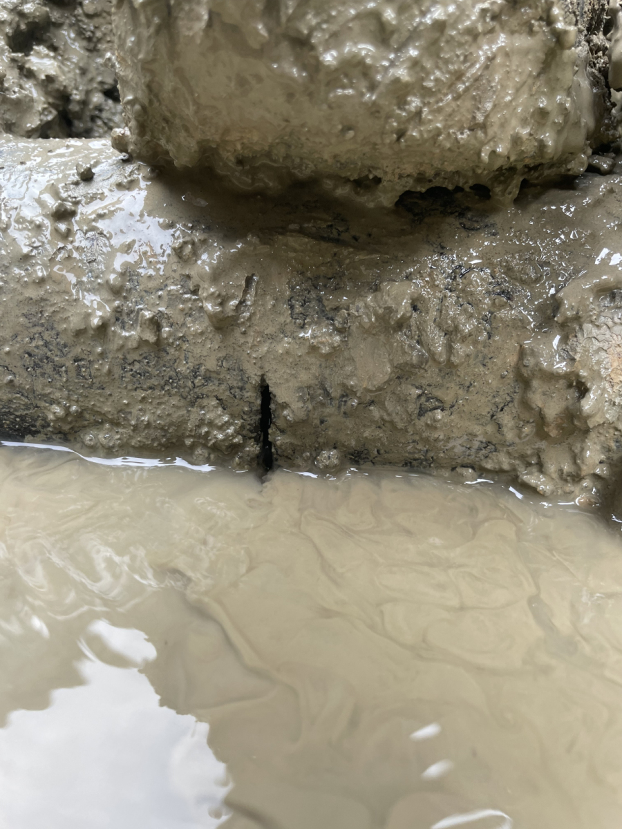 From there, the project didn’t go exactly as planned. The pipe we expected to be 5 feet deep was closer to 14 feet deep. The city’s markings (perhaps skewed by the depth of the pipe) were nearly 20 feet off. As a result, far more of the parking lot was removed, and a far bigger mess was made.